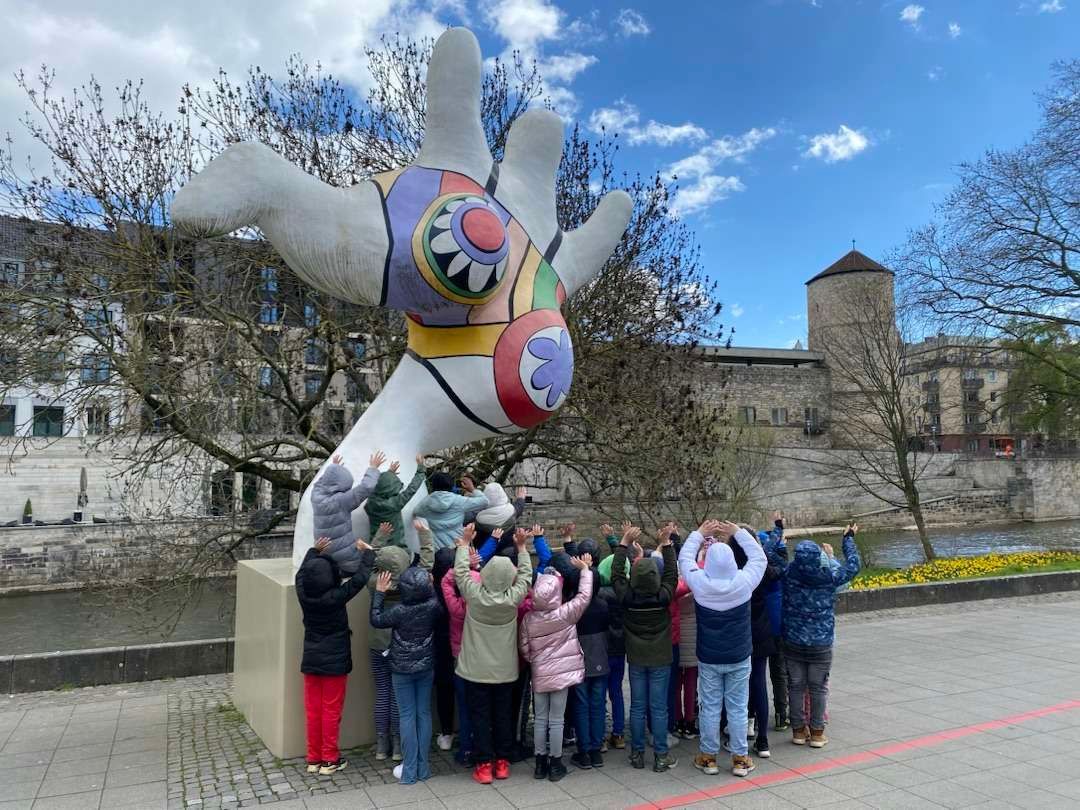 Der krönende Abschluss der Unterrichtseinheit war die Hannover-Rallye entlang des Roten Fadens von der Kröpcke-Uhr bis zu den Nanas an der Leine.